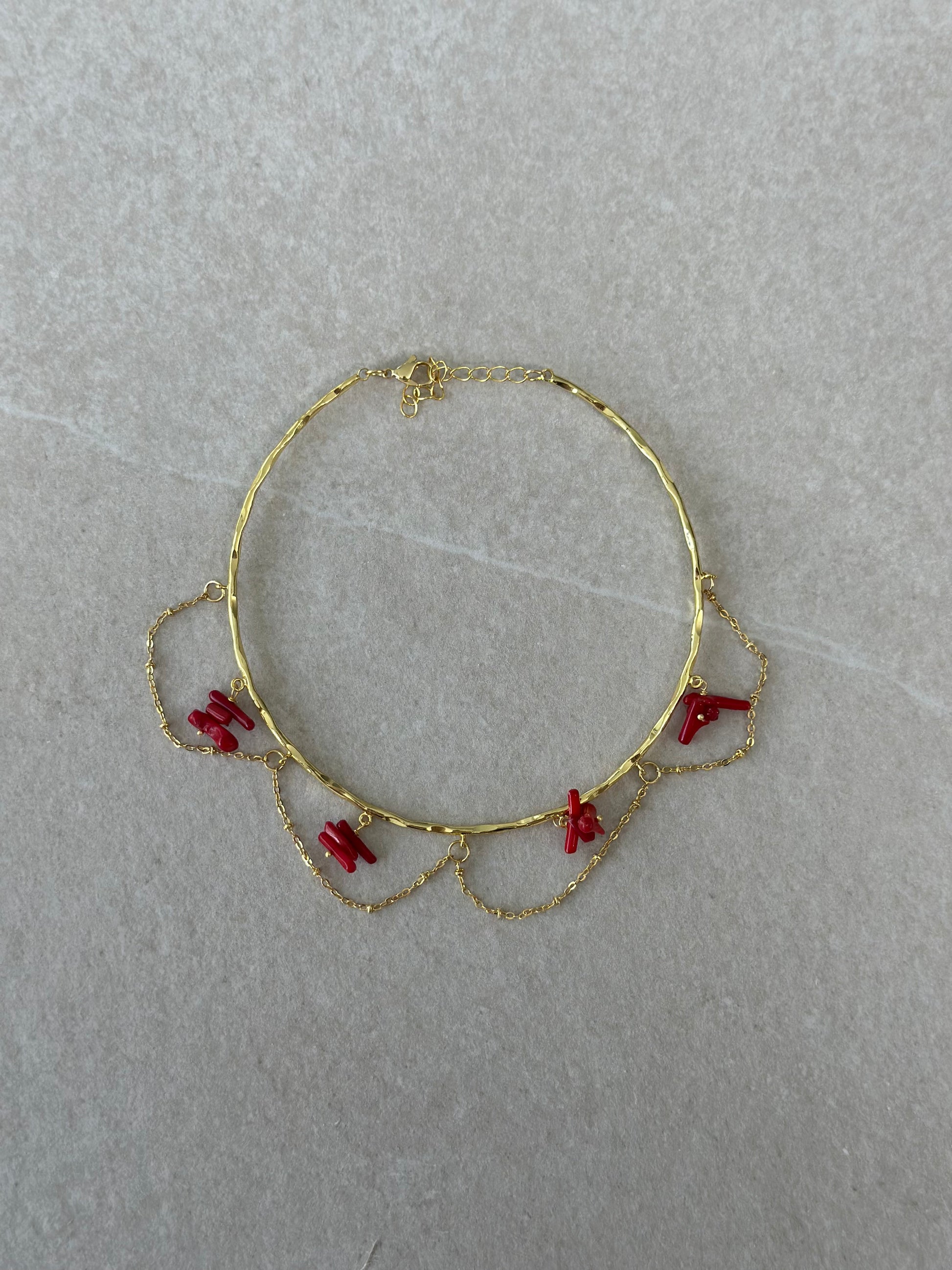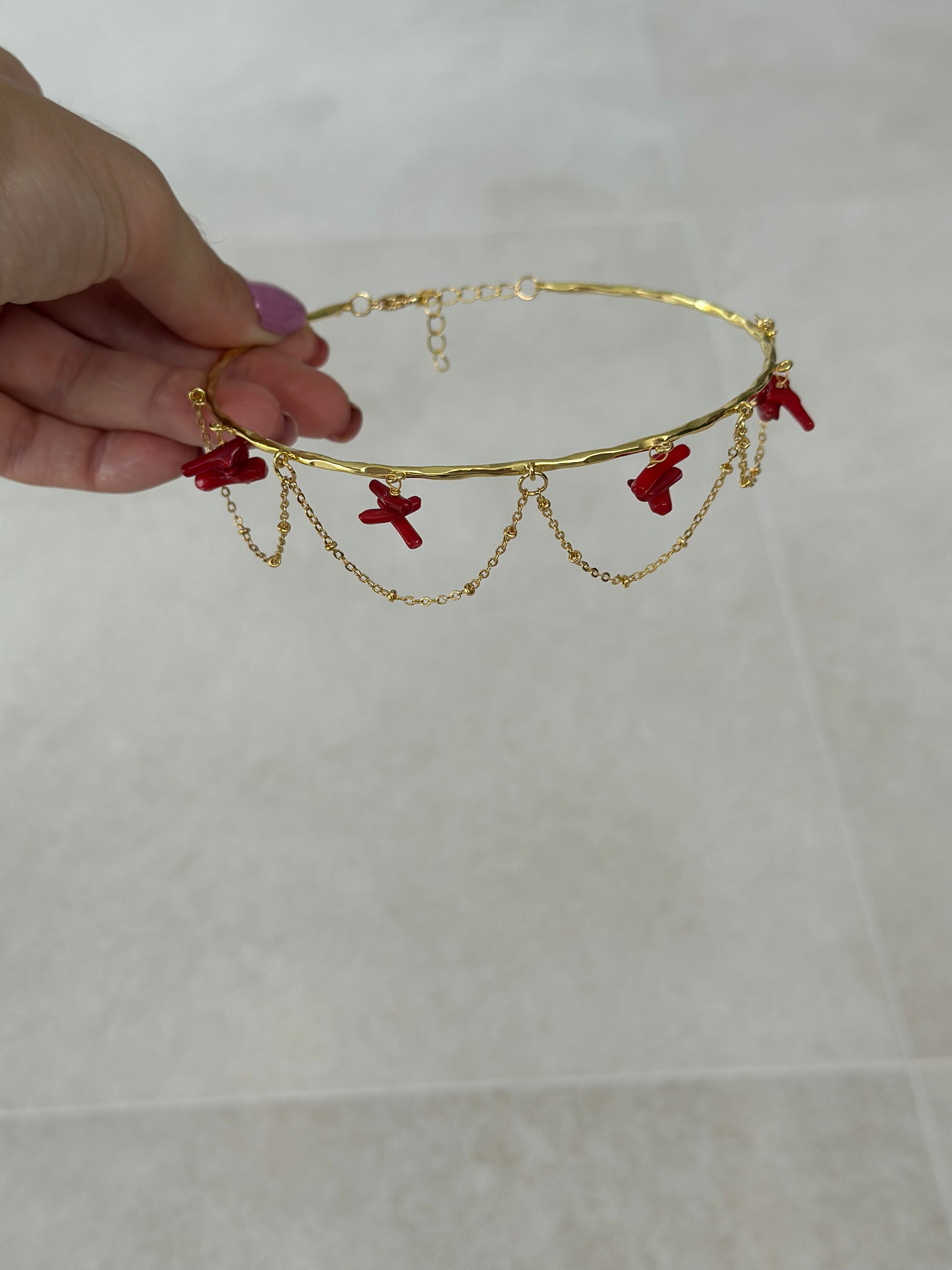 Choker de latón bañado en oro de 18qlts con corales naturales.