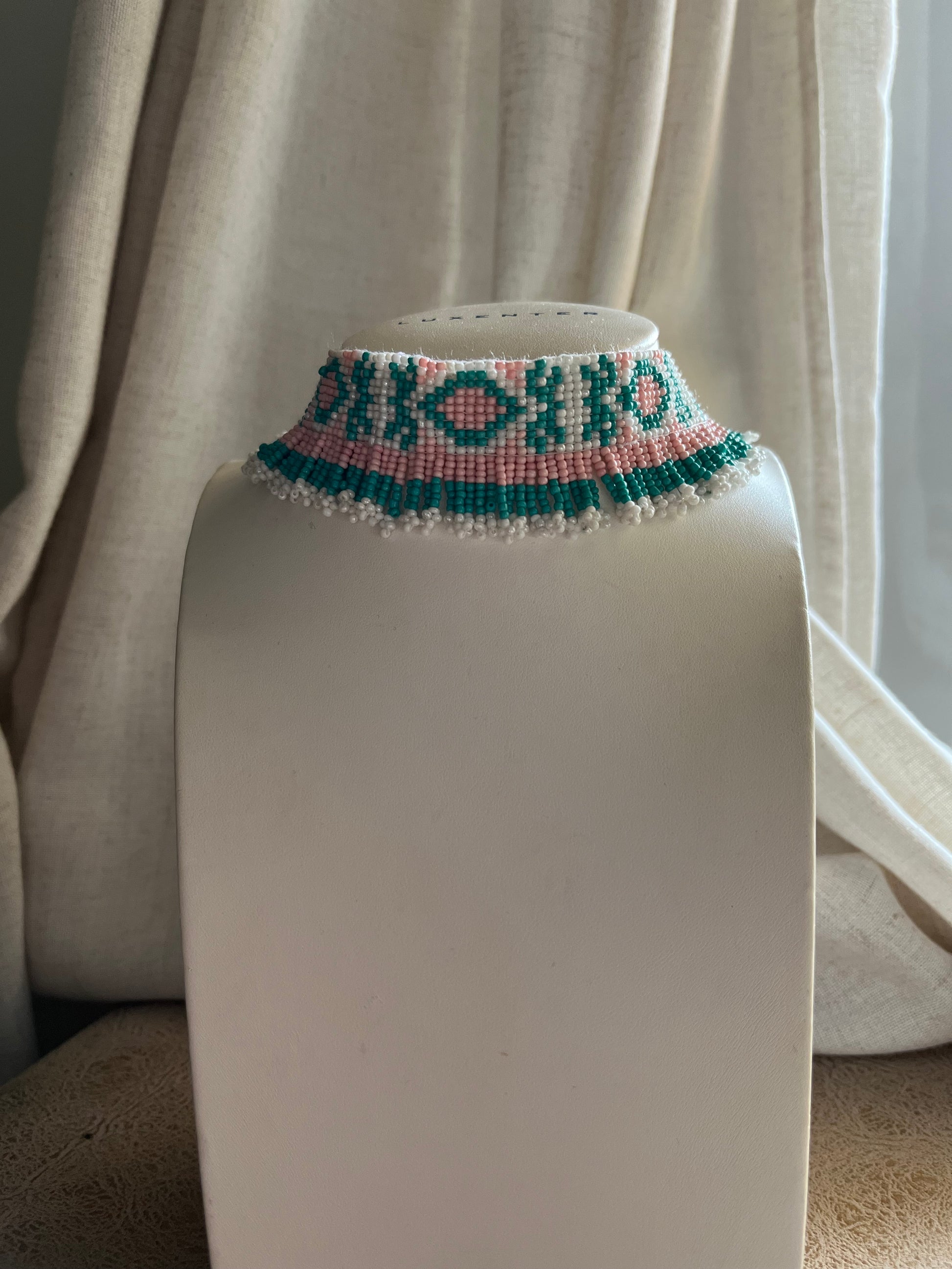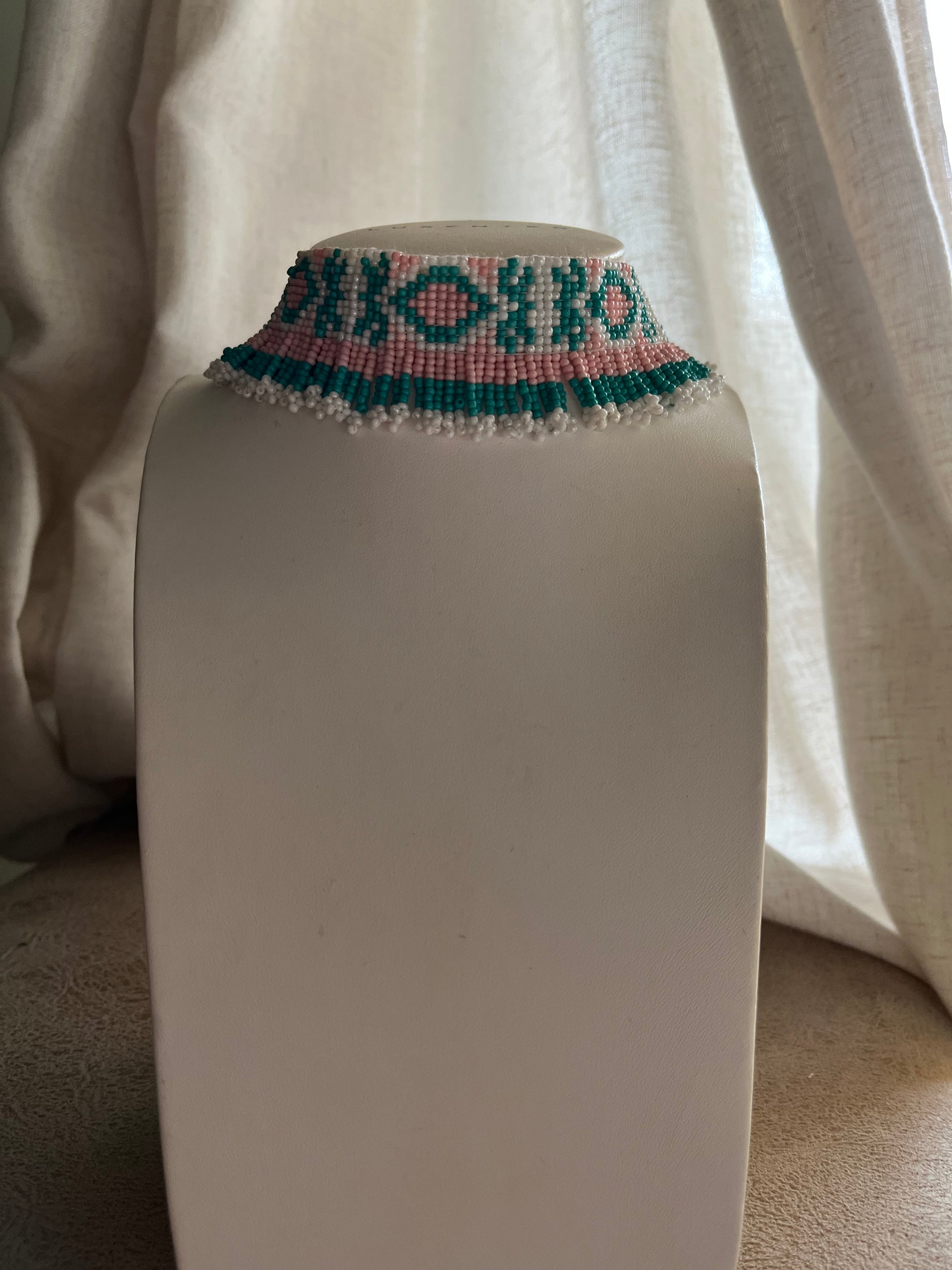 Choker hecho a mano con abalorios multicolor y cierre regulable con lazo