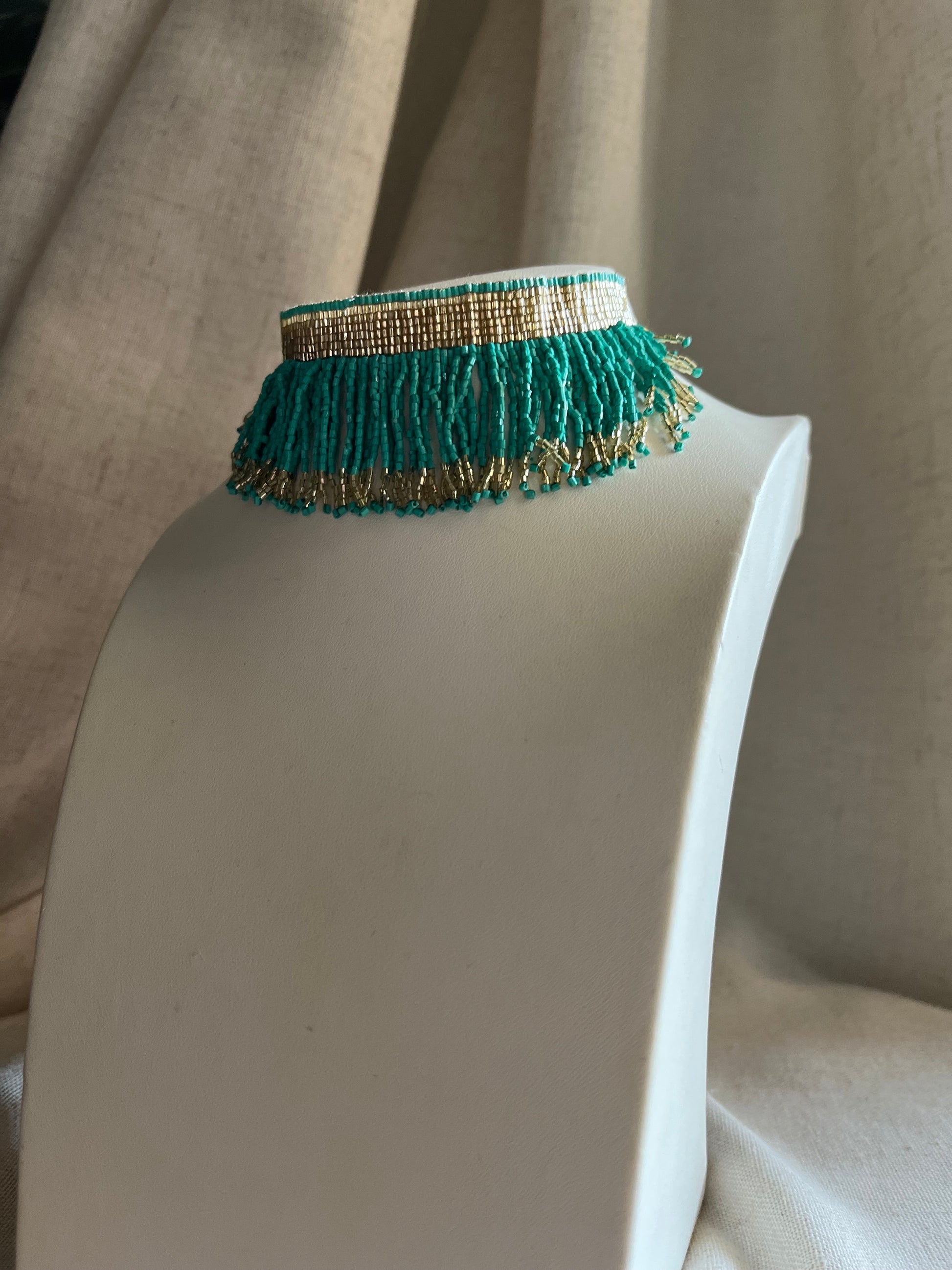 Choker hecho a mano con a abalorios de cristal y cierre ajustable.