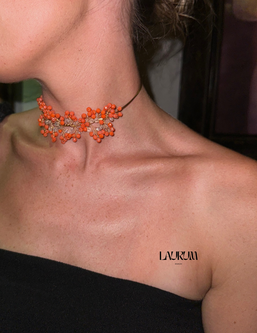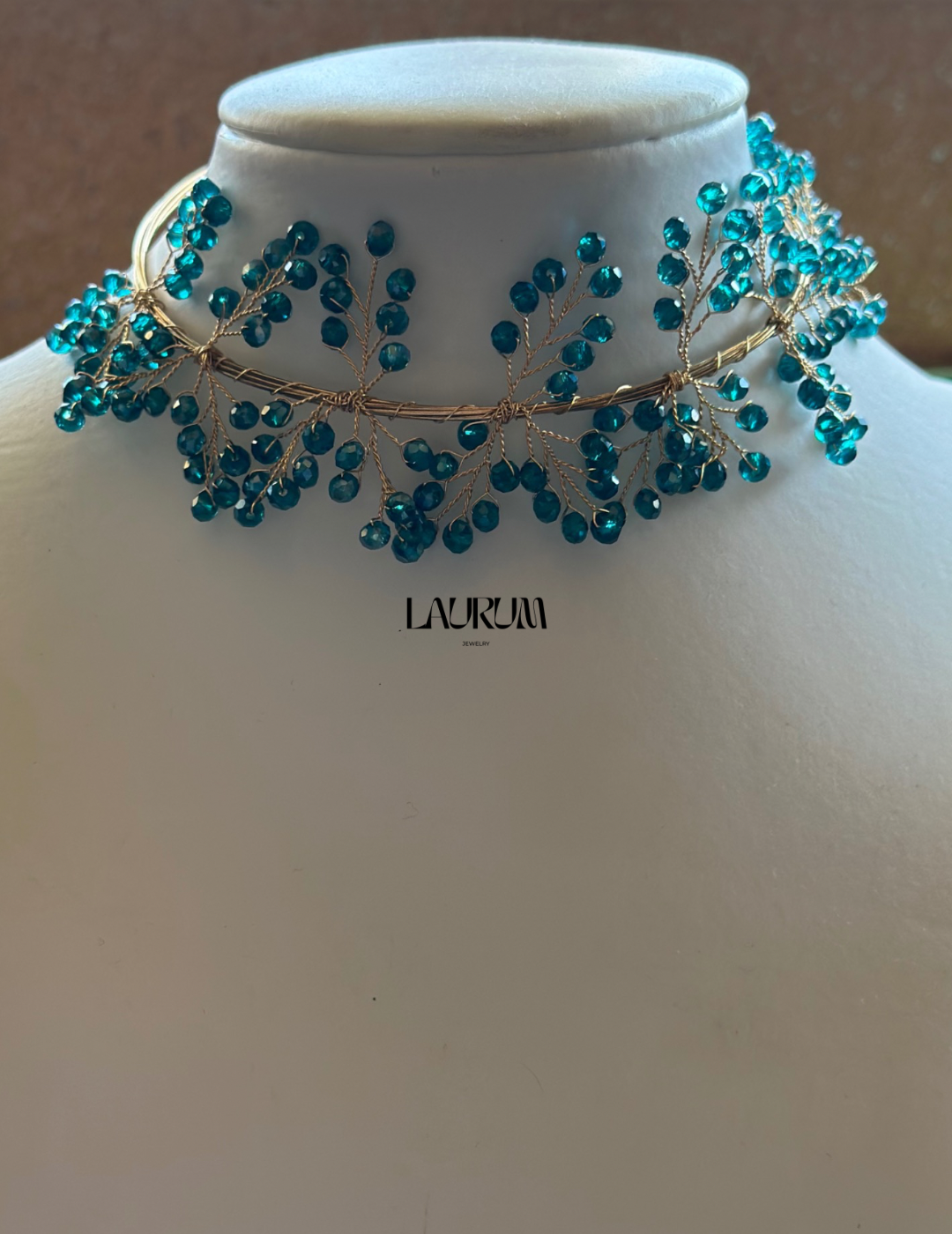 Choker de acero inoxidable con abalorios de cristal en color verde y cierre ajustable con alargador.