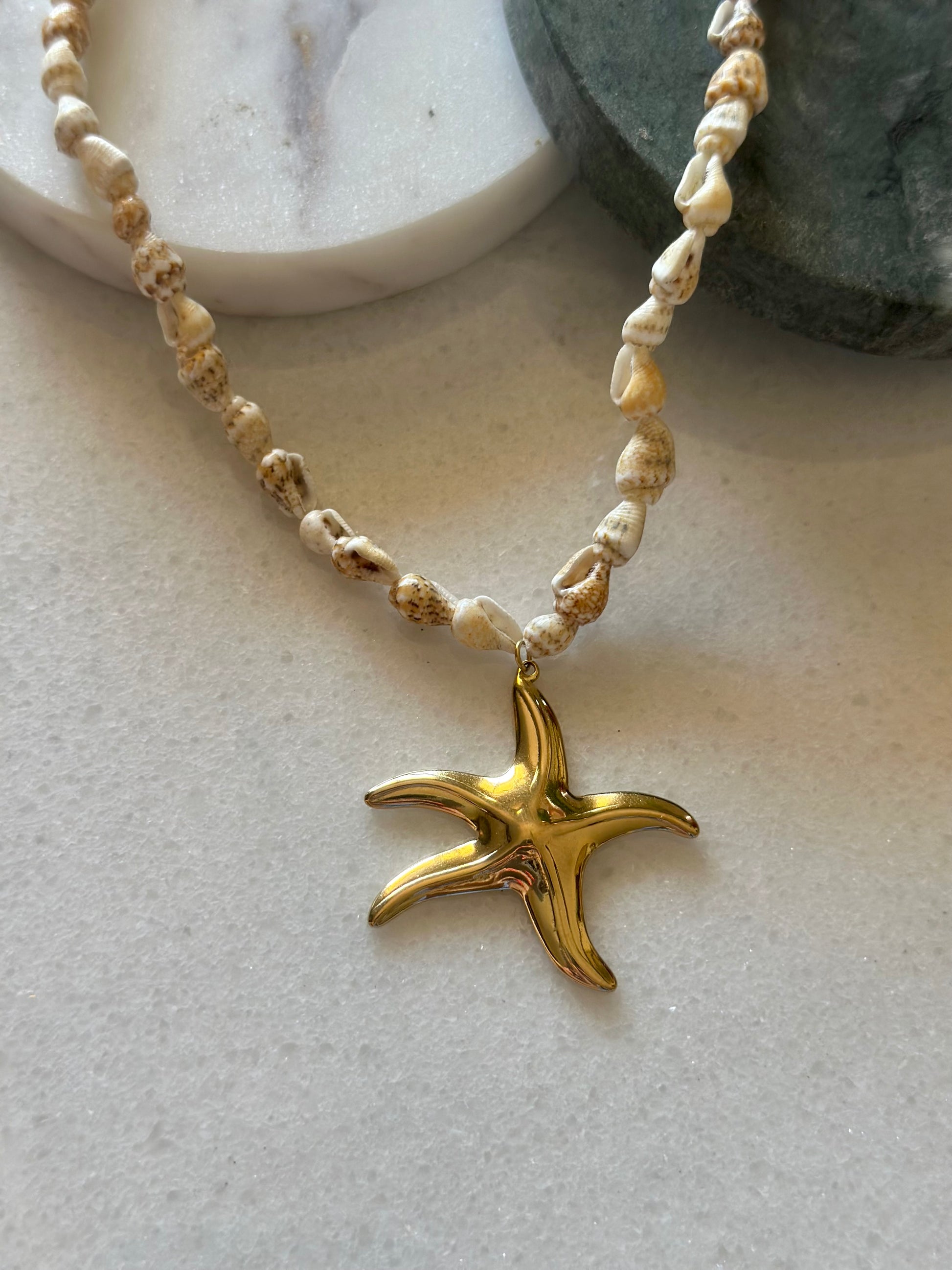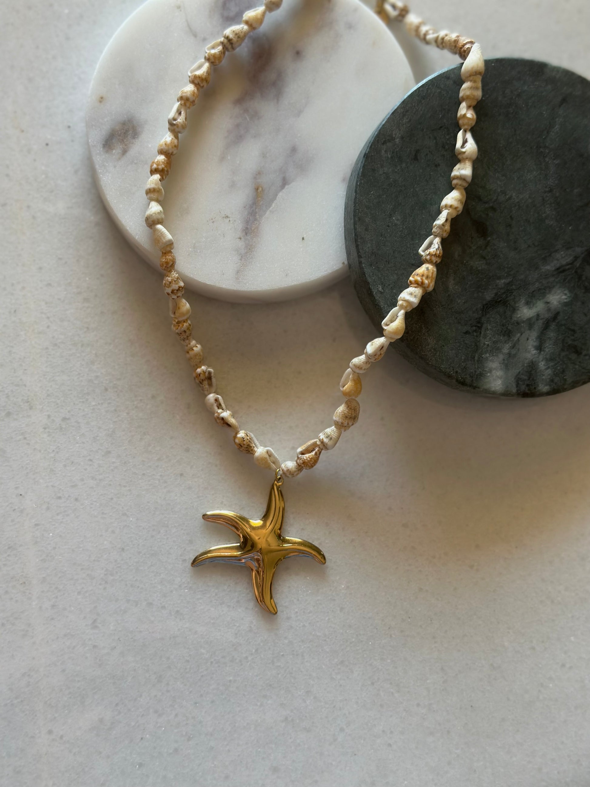 Collar de conchitas naturales con abalorio de acero inoxidable