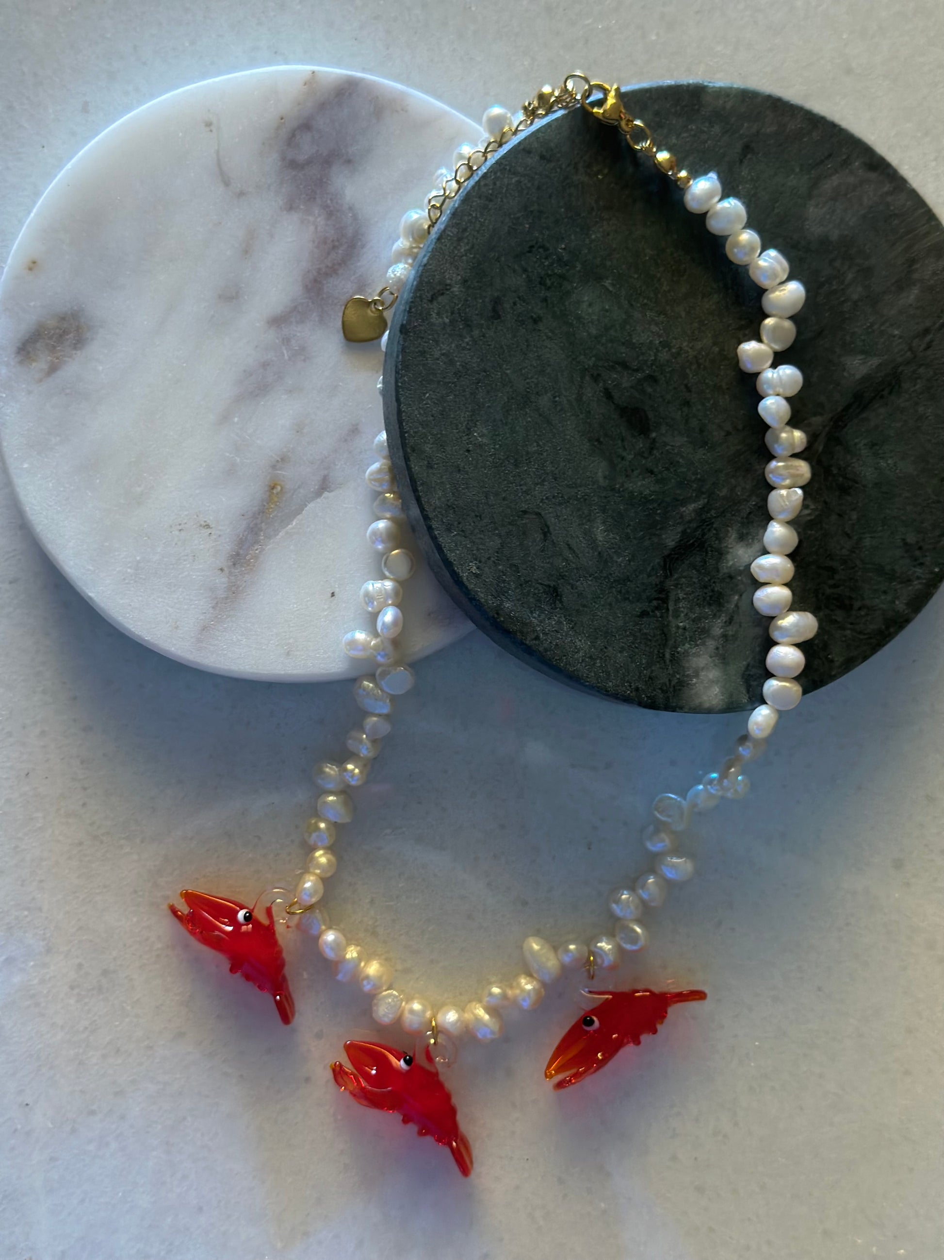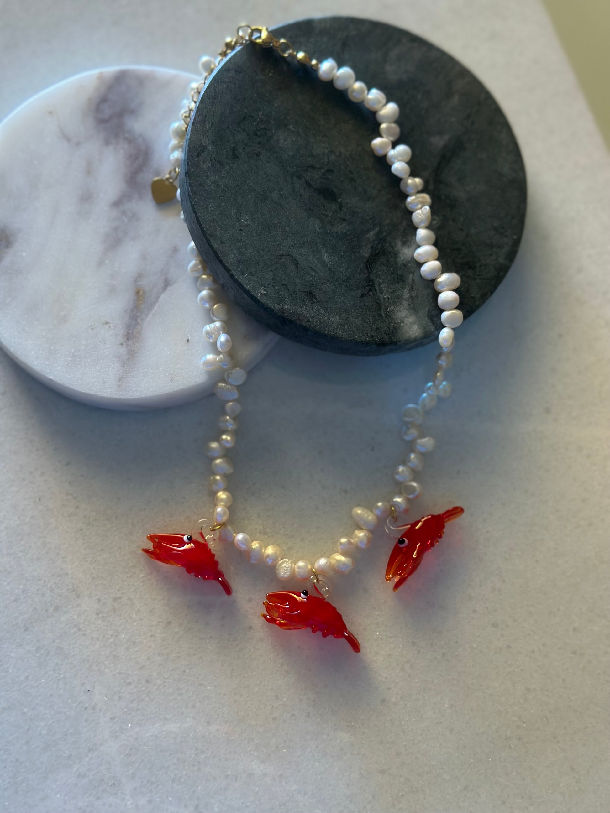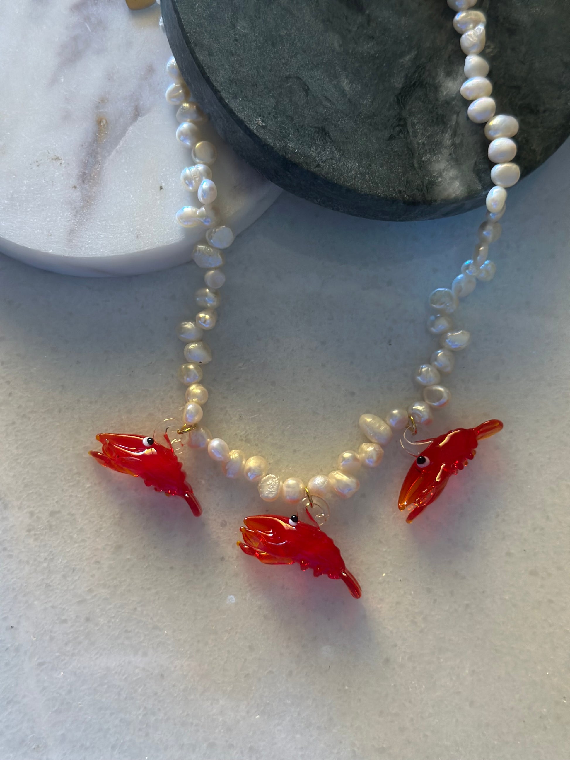 Collar de piedras de rio naturales con abalorios en cristal y cierre de acero inoxidable.
