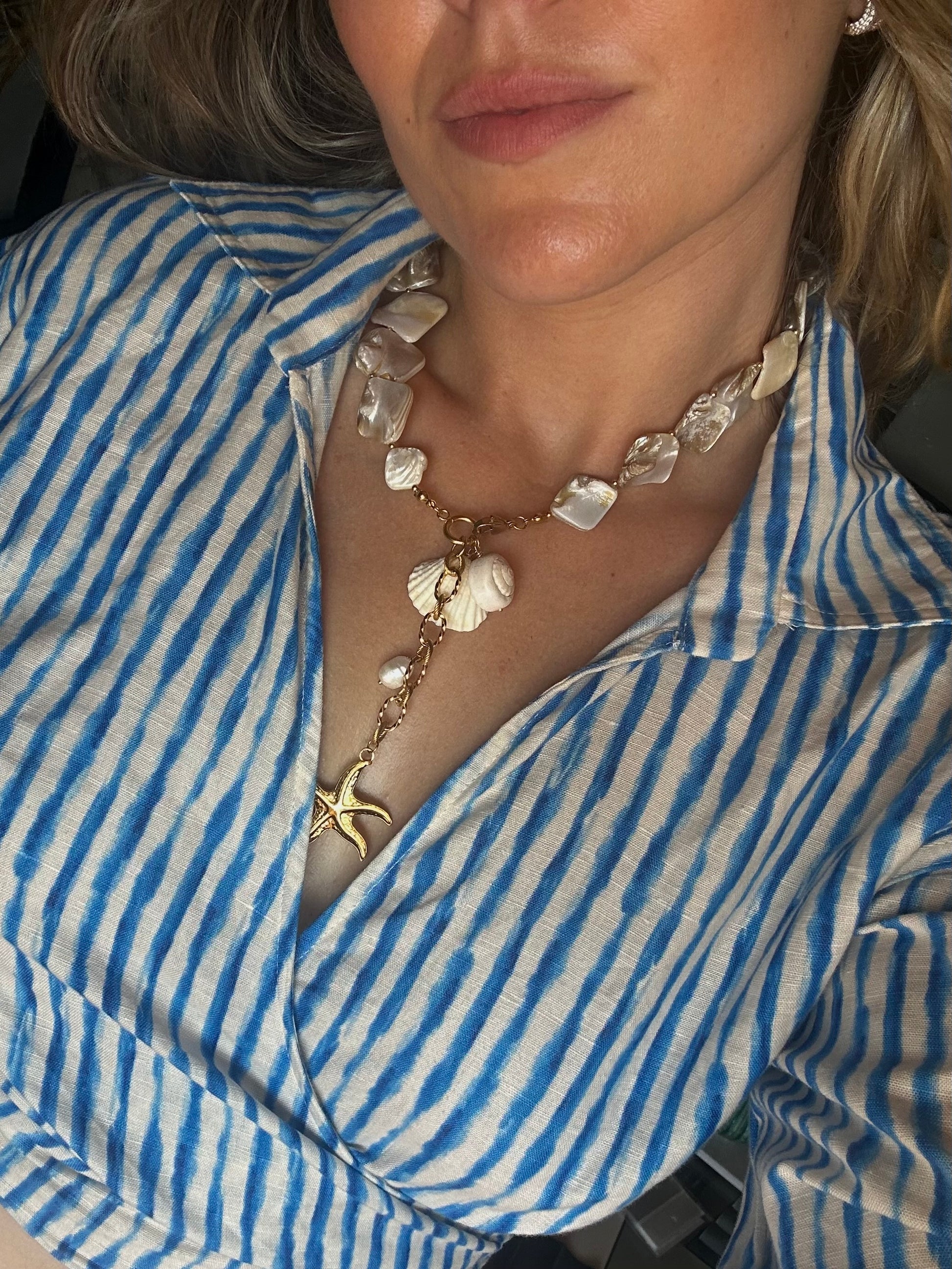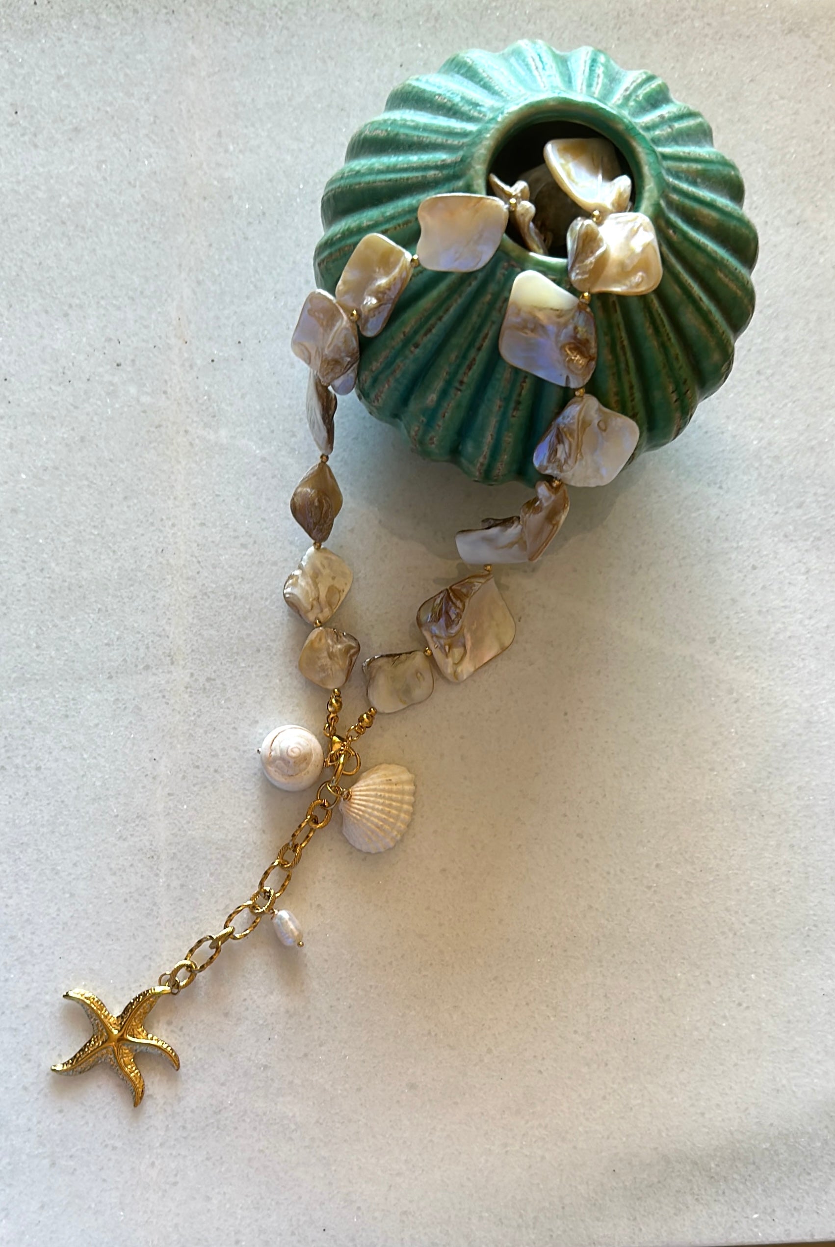 Collar de piedras naturales con abalorios de acero inoxidable.