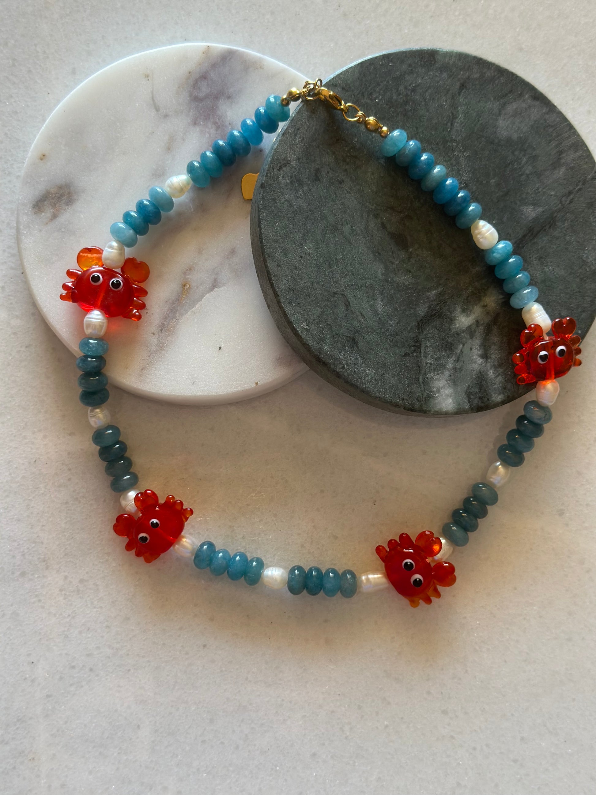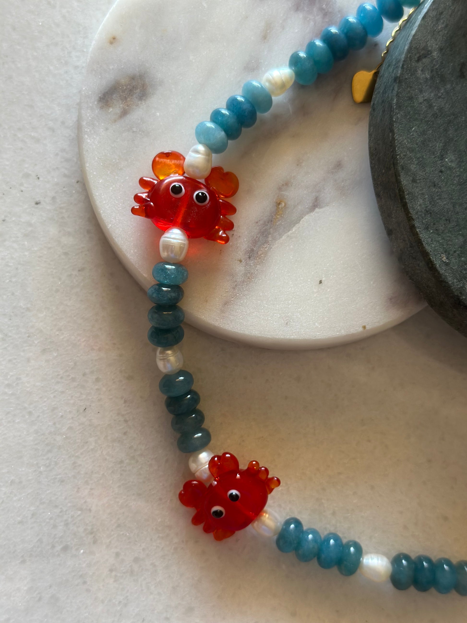 Collar de piedras naturales y abalorios de cristal con cierre de acero inoxidable.